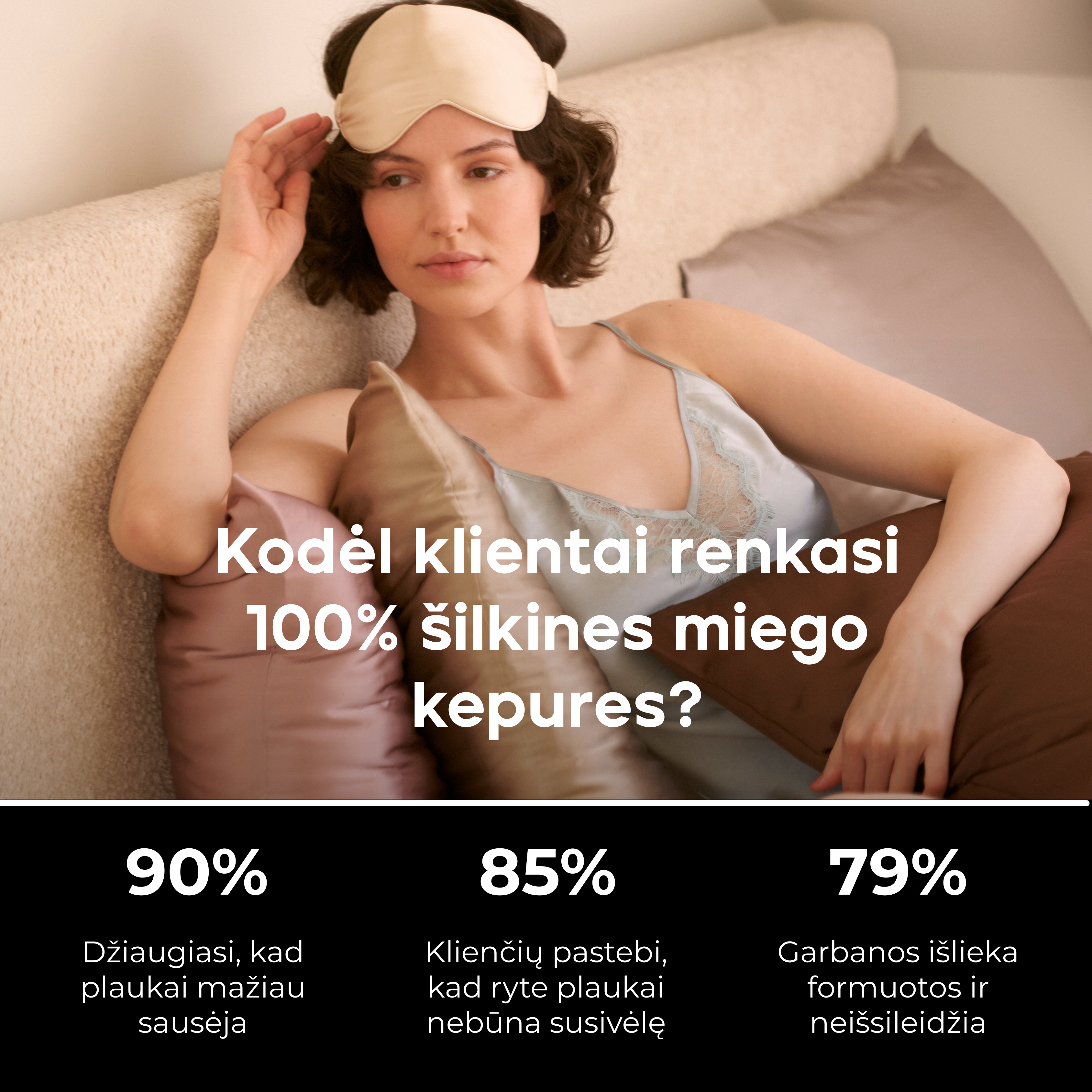 Ärka siledamate, pusavabade ja niisutatumate juustega. Siidist öömüts aitab vähendada juuste murdumist, lõhenemist ja väljalangemist, muutes juuksed hommikuti korralikumaks, pehmemaks ja kergemini soengusse sätitavaks. See on asendamatu aksessuaar neile, kes soovivad pikaajalist juuksehooldust.